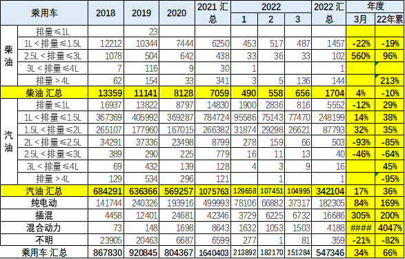 1、乘用车分排量出口