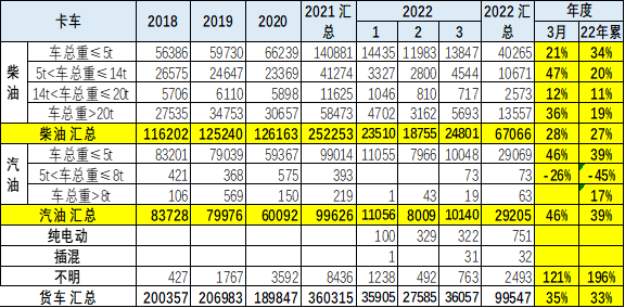 2022 年 1-3 月海关卡车出口 10 万台,同比增长 33%,各类卡车出口表现均较好。