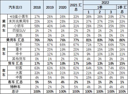 2、乘用车整车出口结构特征