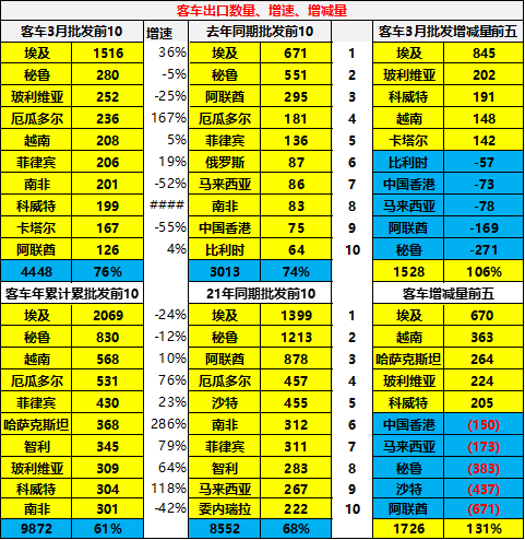 1、客车出口表现
