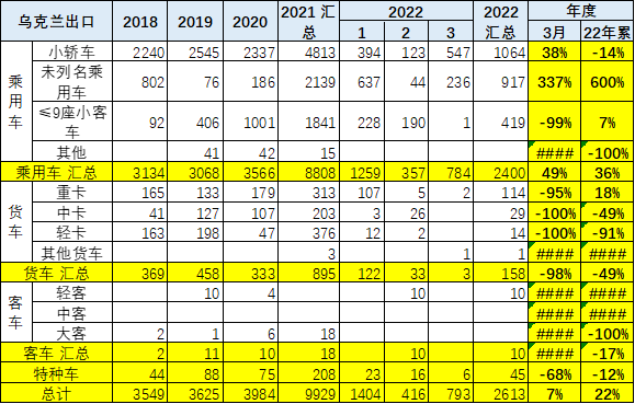 中国对乌克兰汽车出口相对较少,2018-2020 年在年均不足 4000 台水平,其中主要是乘用车和重卡。2021 年中国对乌克兰的汽车出口实现高增长,达到 9929 台,表现很好。
