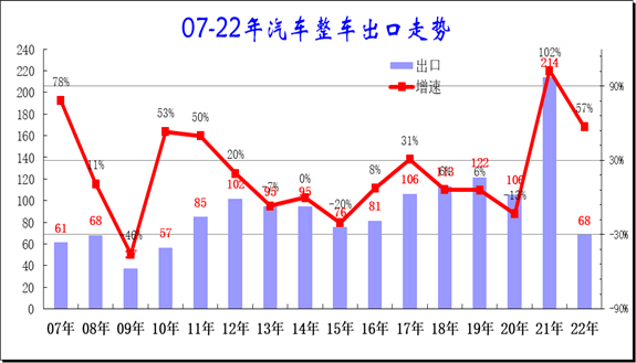 在疫情下,由于海外供应链的问题,中国汽车出口强势崛起,2022 年出口持续走强,体现中国汽车产业的世界竞争力大幅提升。
