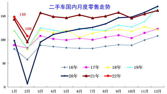 从 2021 年的表现来看,2021 年的秋冬季二手车车源短缺,销量走的并不是很强的特征,主要感觉也是因为芯片的缺损,导致新车的供给不足,二手车的消费价格回升,市场相对较好。