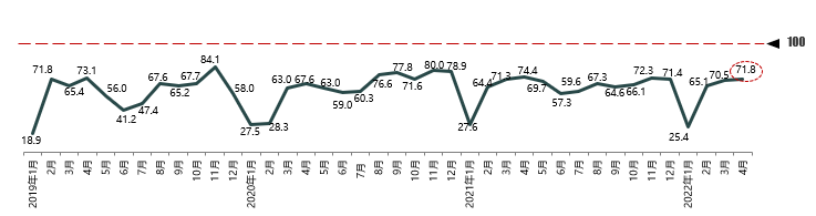 2022年5月6日,中国汽车流通协会发布最新一期“汽车消费指数”:2022年4月份汽车消费指数为71.8。