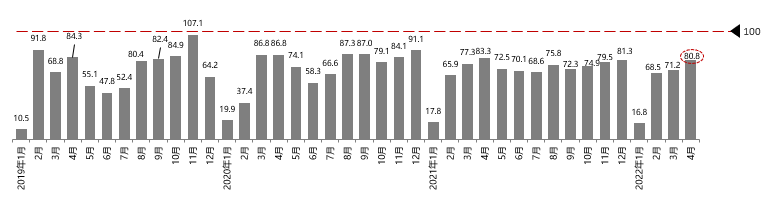 2022 年 4 月入店分指数为 80.8,高于上月。近期疫情防控形势有所好转,吉林等疫情防控重点区域逐渐解封,居民不再需要居家隔离,疫情的缓解促进消费者进店看车人数增加。