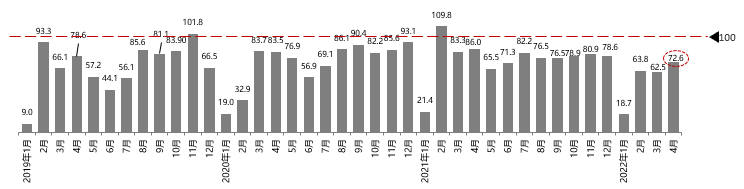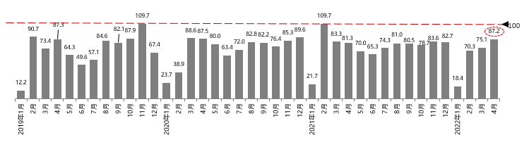 2022年4月购买分指数为87.2,高于上月。随着疫情的缓解和促消费政策的刺激作用还有前期抑制购车需求的释放,都会促进汽车销量的提升。
