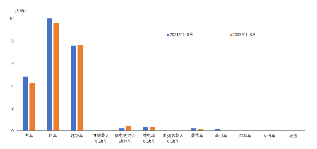 中国汽车工业协会:2022年1-3月汽车整车进口情况简析 据中国汽车工业整理海关总署的数据显示,2022年1-3月,汽车整车共进口22.5万辆,同比下降4.4%;整车进口金额139.5亿美元,同比增长9.6%。 在汽车主要进口品种中,与上年同期相比,越野车进口量略有增长,轿车和小型客车均呈下降。1-3月,上述三大类汽车品种共进口21.5万辆,占汽车进口总量的95.6%。 更多阅读:中国汽车工业协会:2023年3月我国汽车整车进口情况简析中国汽车工业协会:2023年4月我国汽车整车进口情况简析中国汽车工业协会:2023年1-2月汽车整车进口情况简析中国汽车工业协会:2023年6月我国汽车整车进口情况简析中国汽车工业协会:2023年7月我国汽车整车进口情况简析中国汽车工业协会:2024年6月我国汽车整车进口情况简析中国汽车工业协会:2023年1-2月我国汽车商品出口金额前十国情况简析中国汽车工业协会:2022年3月前十位轿车品牌销量排名中国汽车工业协会:2021年5月汽车工业运行情况简述中汽协:2021年1-11月中国汽车整车进口前十国情况简析中国汽车工业协会:2023年1-8月前十位轿车生产企业销售情况简析中国汽车工业协会:2023年1-8月前十位SUV生产企业销售情况简析中国汽车工业协会:2023年上半年汽车制造业营业收入同比保持增长中国汽车工业协会:2023年1-7月七大类汽车商品进出口金额情况中国汽车工业协会:2023年上半年汽车制造业工业增加值继续保持两位数增长