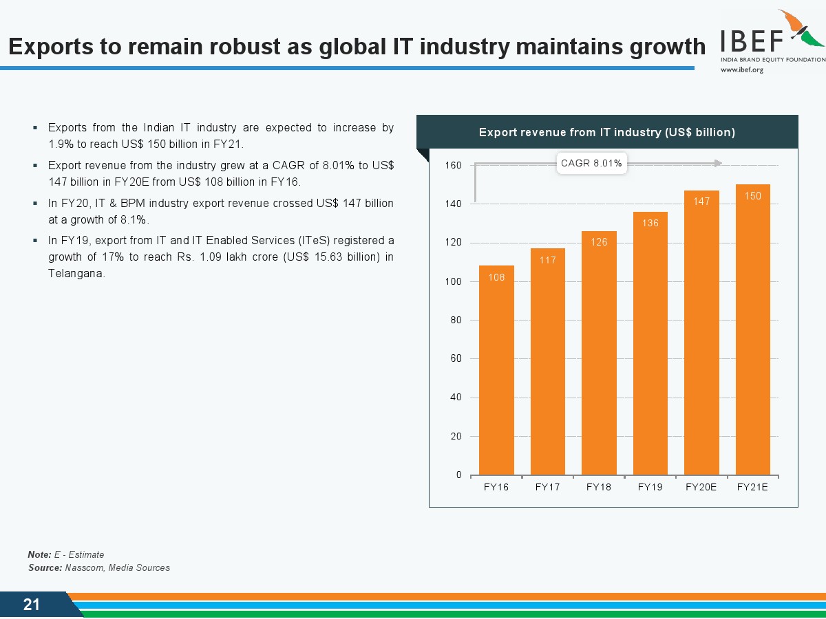 印度 IT 行业的出口预计将在 2021 财年增长 1.9%,达到 1500 亿美元。