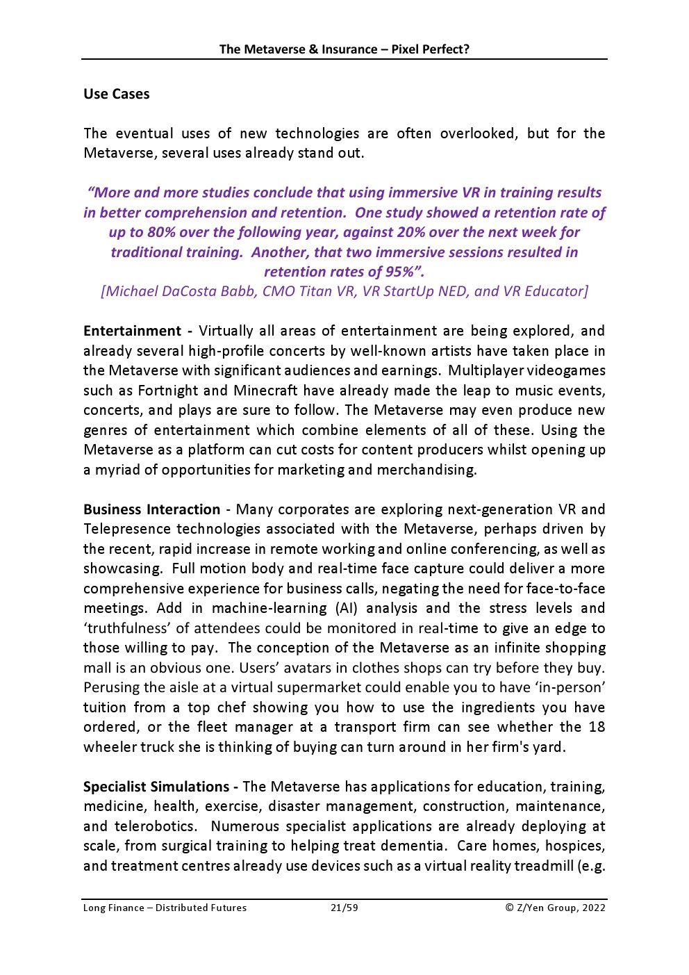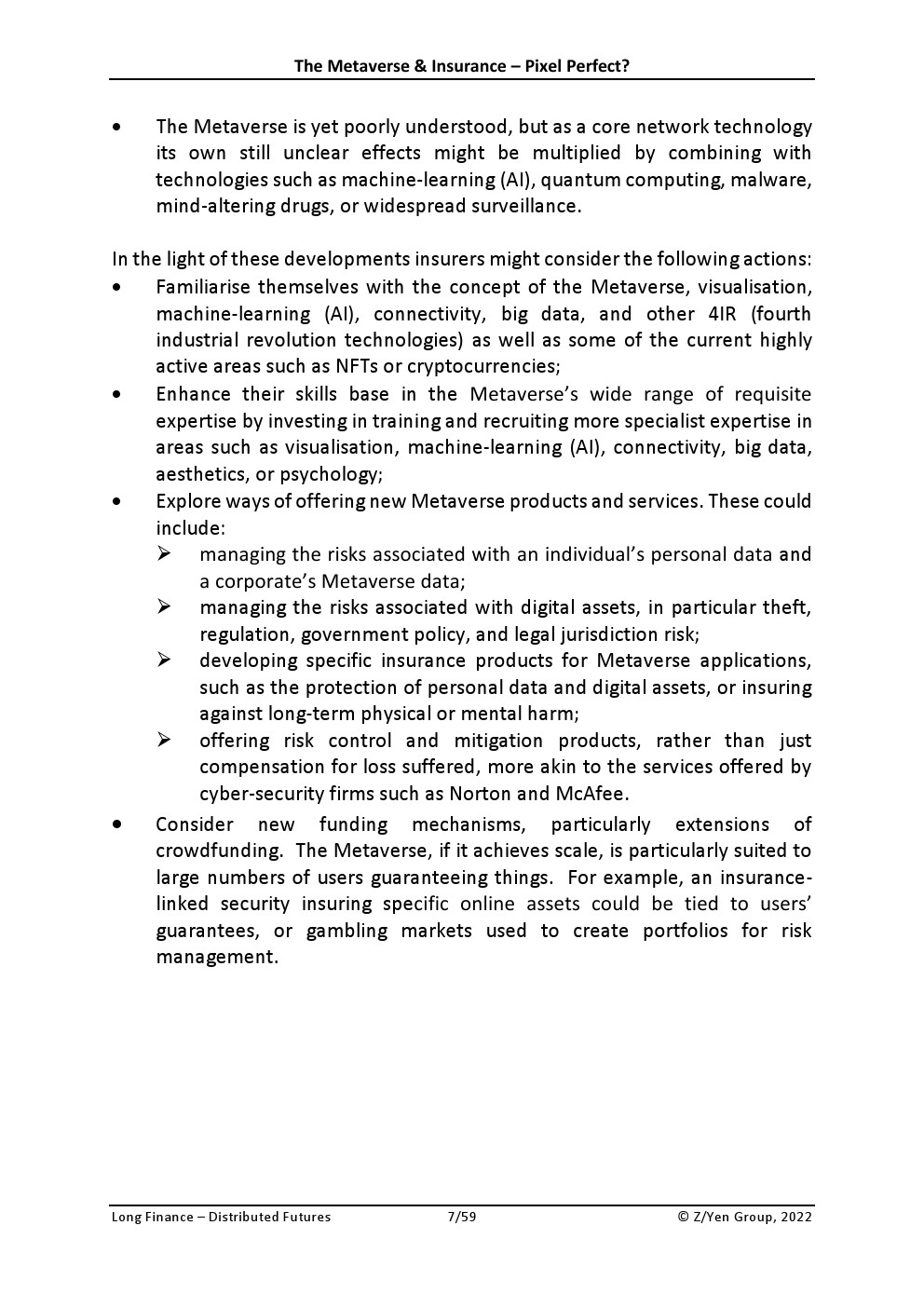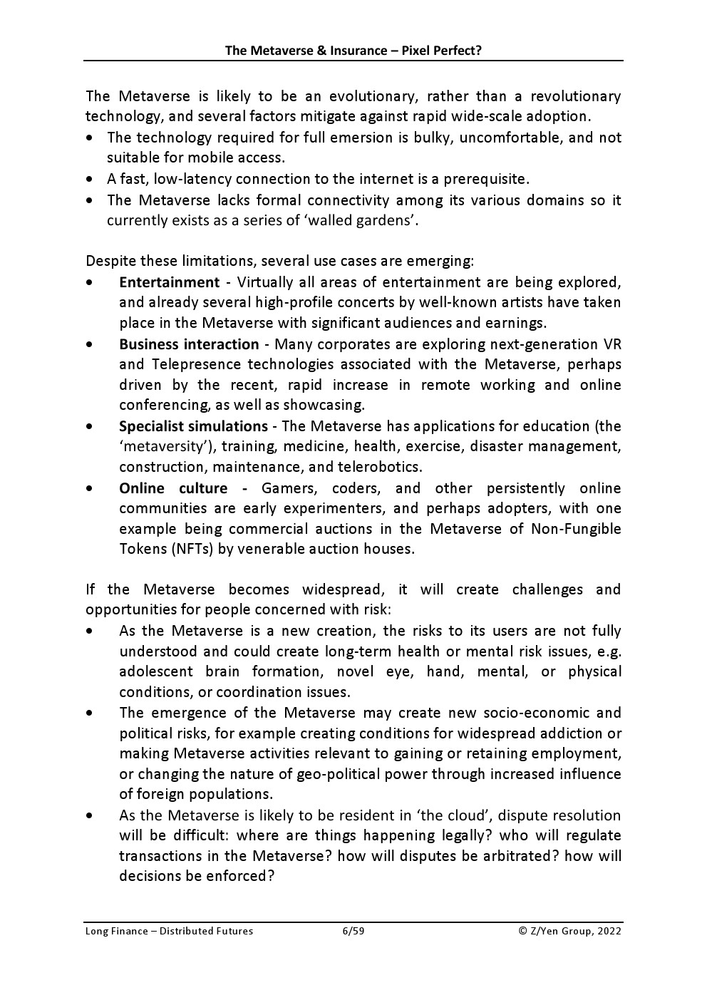 为元宇宙应用开发特定的保险产品,例如保护个人数据和数字资产,或为长期的身体或精神伤害提供保险;