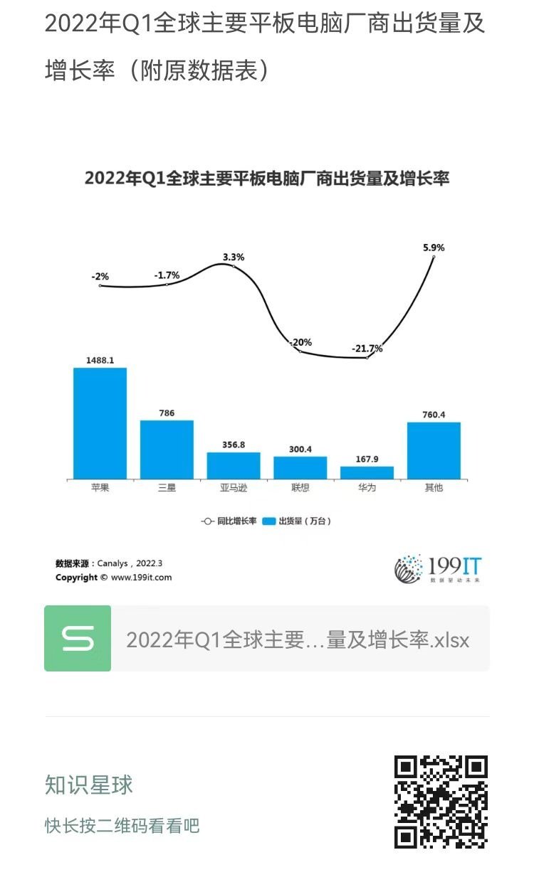 - 2023年Q1全球主要平板电脑厂商出货量及增长率(附原数据表)