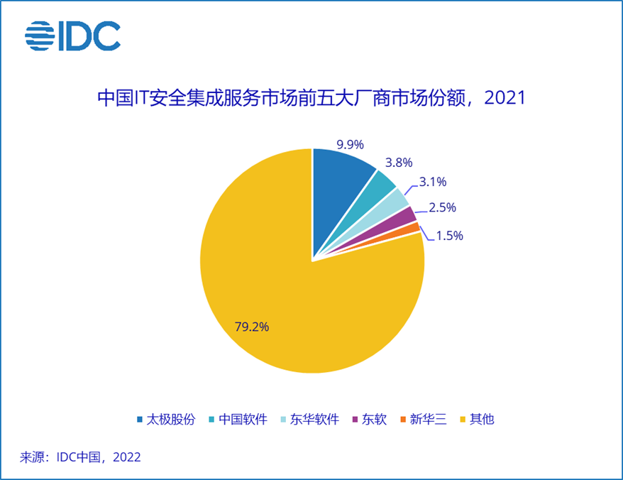 安全集成服务:是技术服务提供商通过规划、设计、实施、项目管理四个步骤形成完整安全解决方案的服务,它涉及系统和应用程序的定制化开发,以及集成企业打包的安全硬件、软件服务等,2021 关键厂商表现如下图: