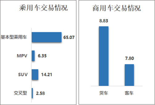具体来看,4月乘用车情况:基本型乘用车共交易65.07万辆,环比下降16.12%,同比下降27.7%;SUV 共交易14.21万辆,环比下降16.36%,同比下降12.15%;MPV共交易6.35万辆,环比下降21.22%,同比下降27.46%;交叉型乘用车共交易2.58万辆,环比下降16.94%,同比下降22.64%。