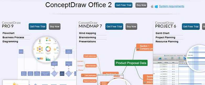 A powerful diagramming tool, ConceptDraw Office provides support for flowcharts and mind maps on Windows and Mac.