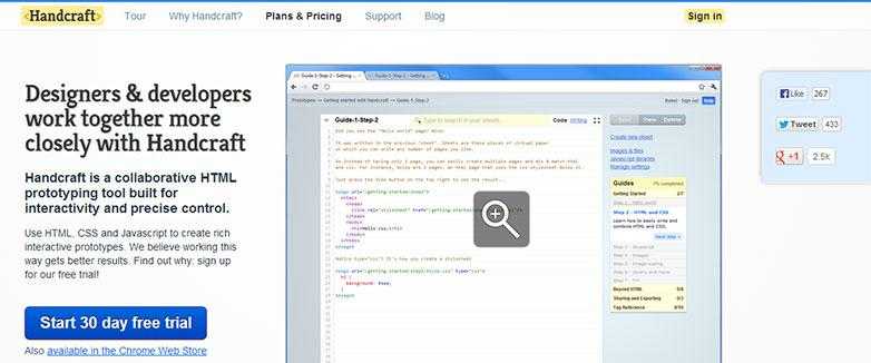 Handcraft is a collaborative HTML/CSS/JavaScript prototyping tool.
