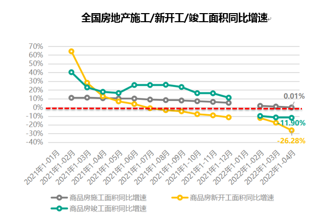 从新开工和竣工面积看,都出现了较大幅度的同比下滑的情况,且幅度也在进一步扩大。今年是房企偿债高峰期,企业资金压力较大,房企开工积极性明显不足,叠加各地疫情反复影响,预期短期内房企较大资金压力依旧难以缓解,将持续拖累新开工面积增长。