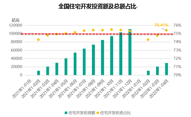 其中,住宅开发投资额为 2.95 万亿元,占到 75% 的比重,较去年同期持平,但同比增速也出现负值,为 – 2.1%。