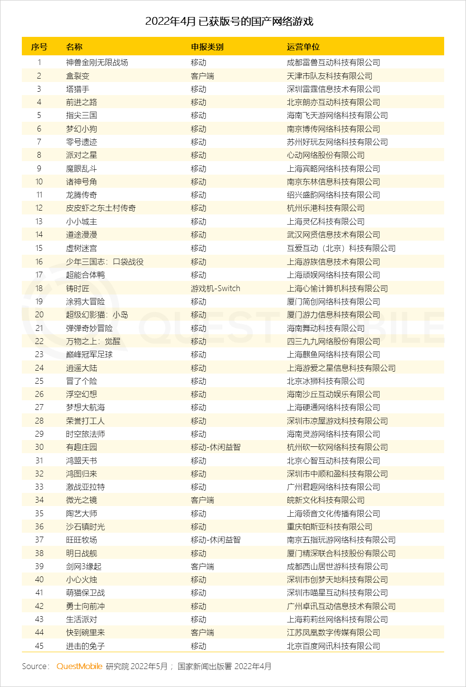2022年4月,国家新闻出版署网站在公布当月的国产网络游戏审批信息,一共有45款游戏获得版号。时隔8个月,游戏版号再度发放,重振行业信心。