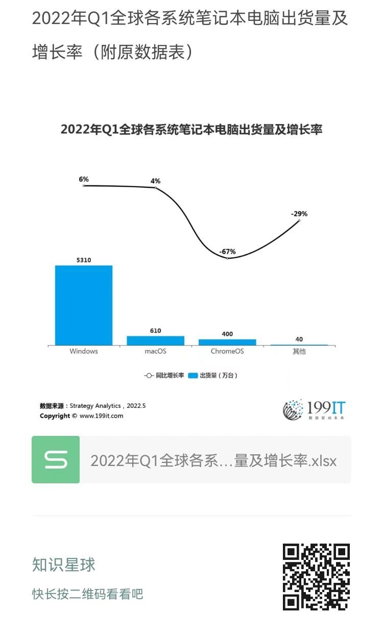 2022年Q1全球各系统笔记本电脑出货量及增长率(附原数据表) ​​​​