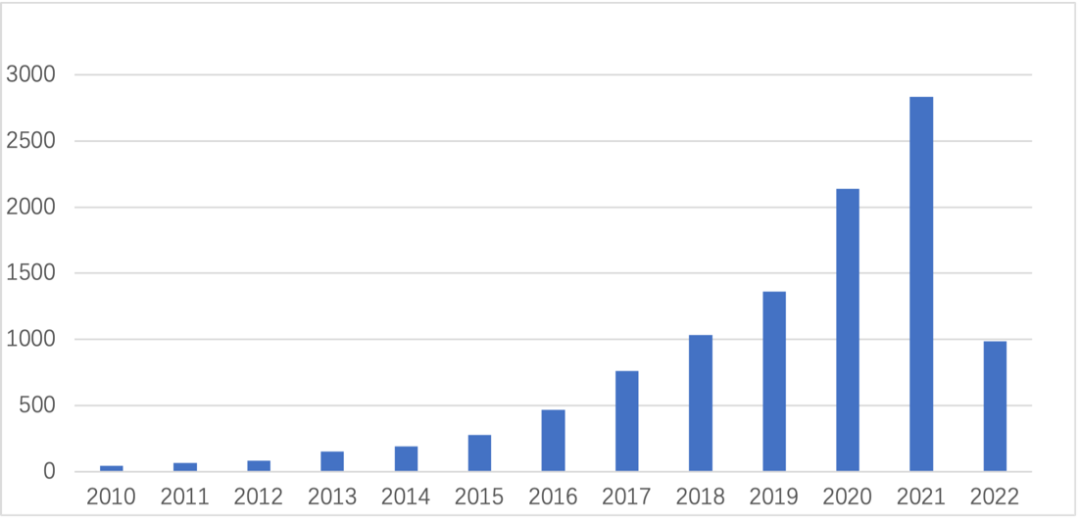 中国在类器官领域中,近年来呈现出科研数量大幅度上升的趋势,尤其在 2019-2020 年这两年间显现出了强劲的发展势头,发表的文献数量在全球的排名从第六位(2009-2019 年)跃至第二位(2020 年),仅次于美国。