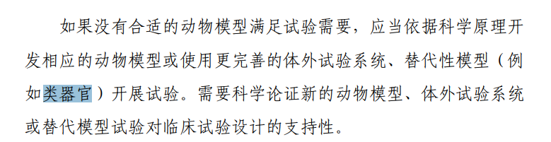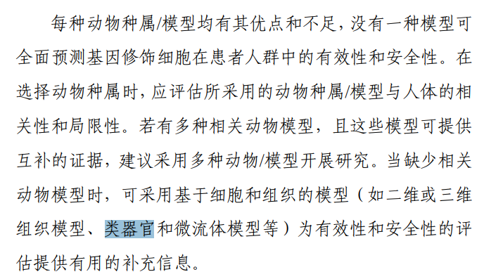 2021 年 11 月 30 日,国家药监局药审中心发布《基因治疗产品非临床研究与评价技术指导原则(试行)》和《基因修饰细胞治疗产品非临床研究技术指导原则(试行)》(1),首次将类器官列入基因治疗及针对基因修饰细胞治疗产品的指导原则当中。