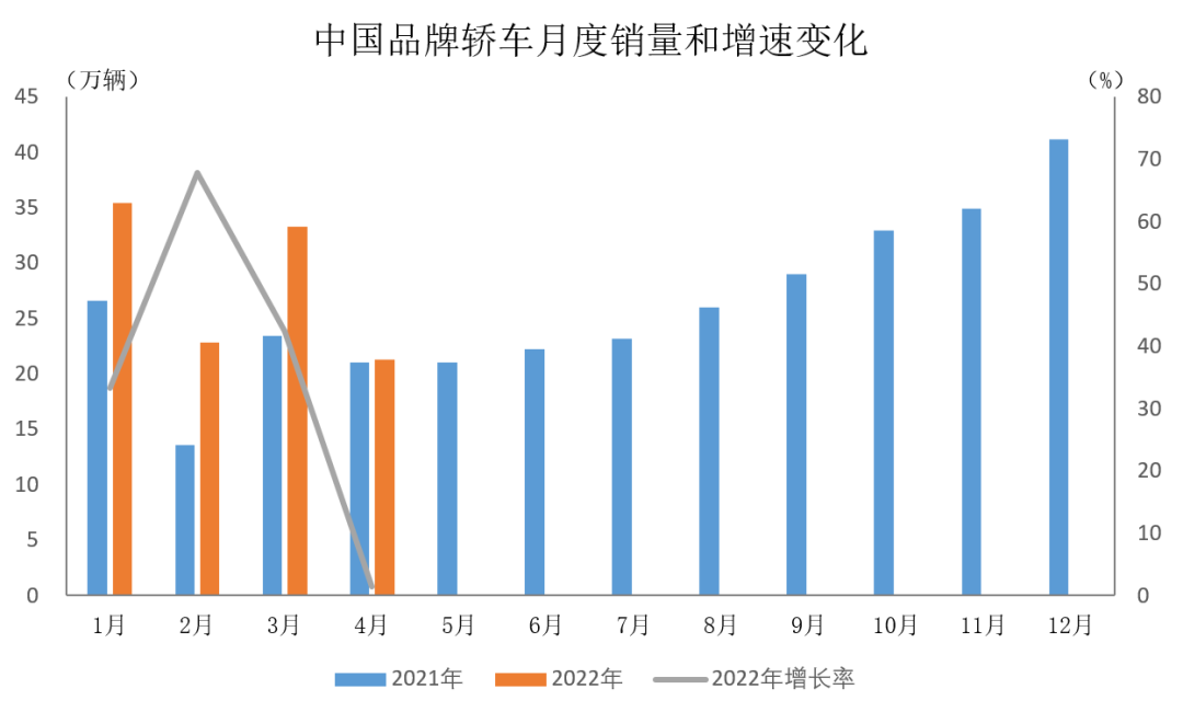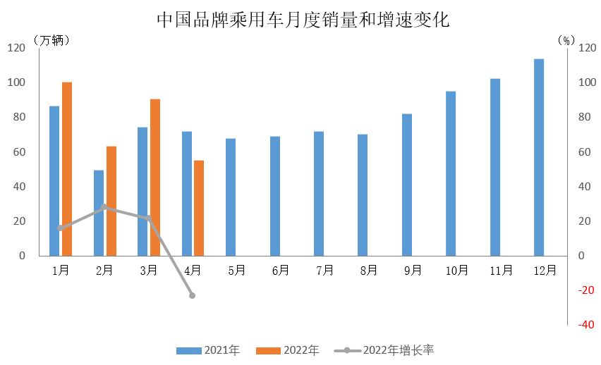 据中国汽车工业协会统计分析,2022 年 4 月,中国品牌乘用车销量环比和同比均呈较快下降,市场份额较快上升。