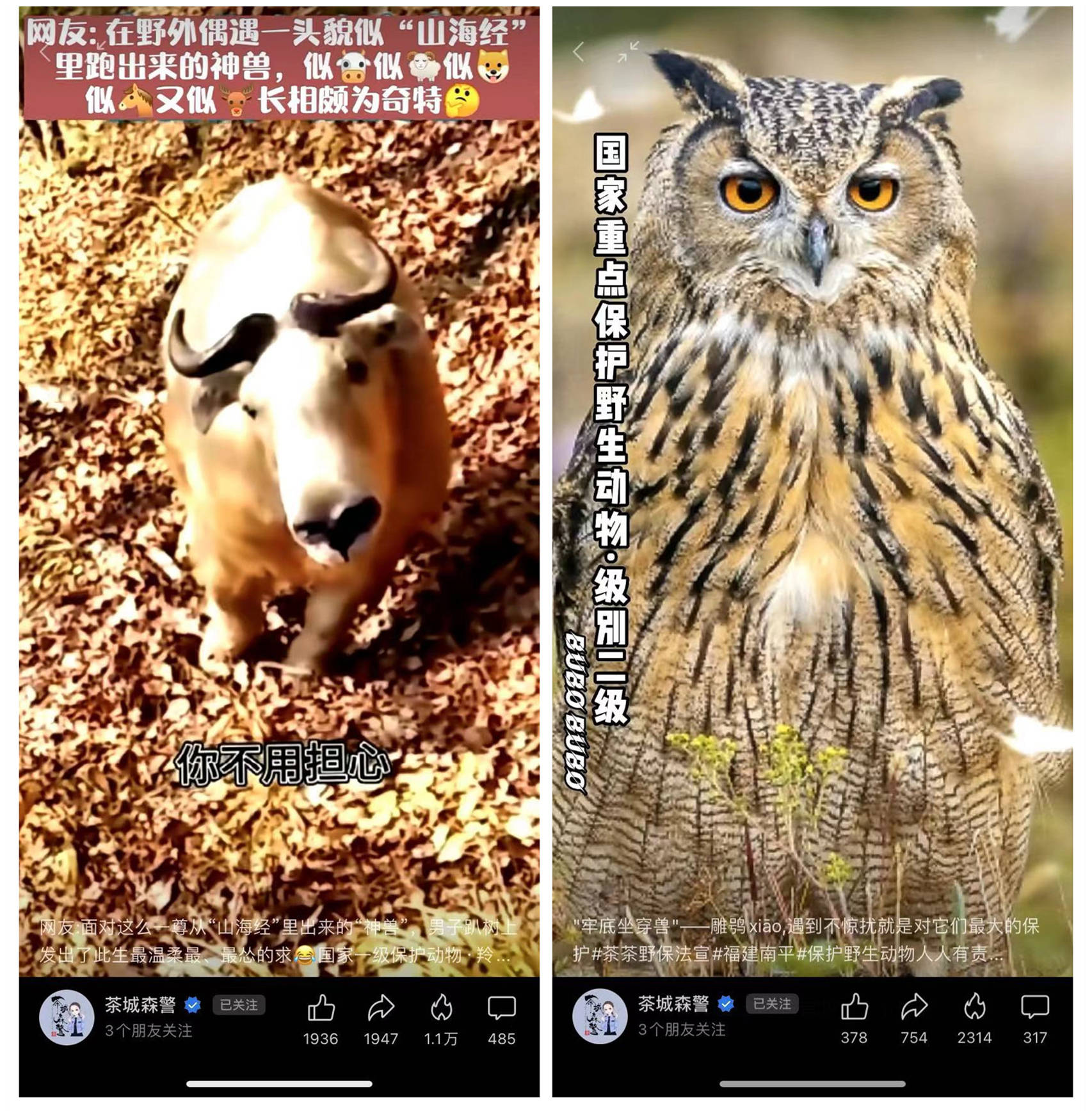 而在视频号平台上,海量创作者正在为野生动物保护事业贡献力量,其中,森林警察@茶城森警、科普博主@花蚀的人间观察、野生动物保护科普教育基地@南京市红山森林动物园 、摄影博主@嗑叔磕动物@春晓.z@阿伟蛇哥便是其中的佼佼者。