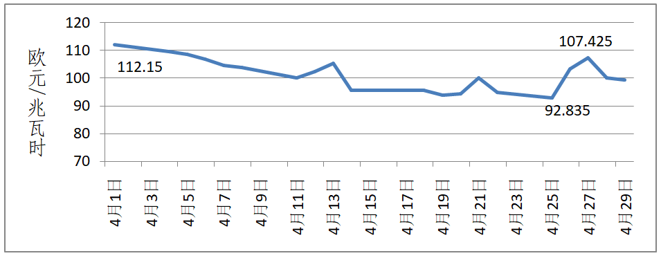 图 3 2022 年 4 月荷兰 TTF 天然气价格走势