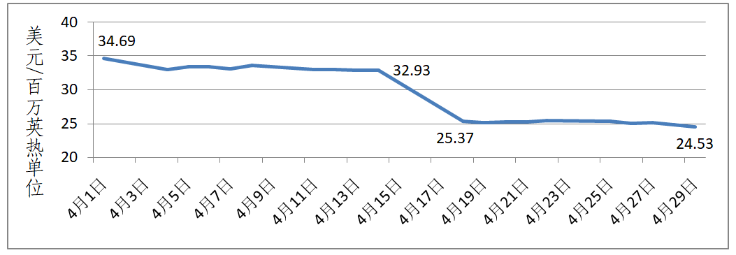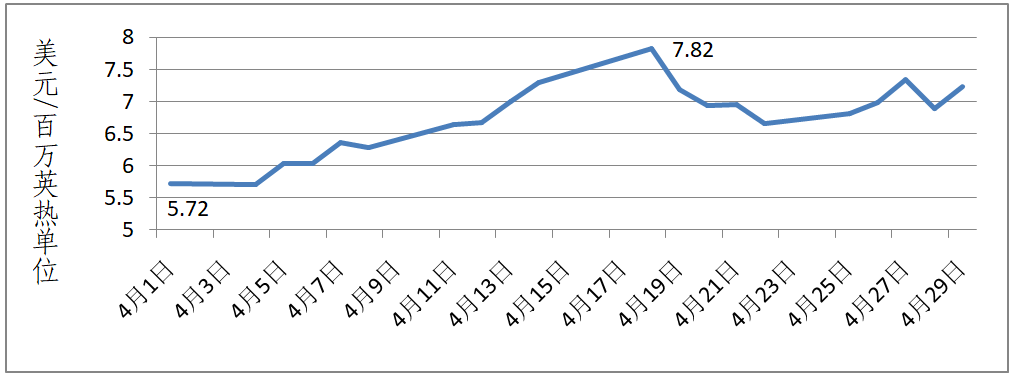 图 2 2022 年 4 月美国 Henry Hub 天然气价格走势