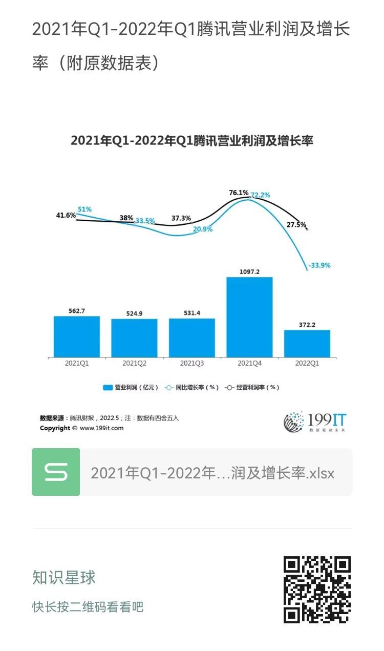 - 2019年Q1-2021年Q1腾讯营业利润及增长率(附原数据表)