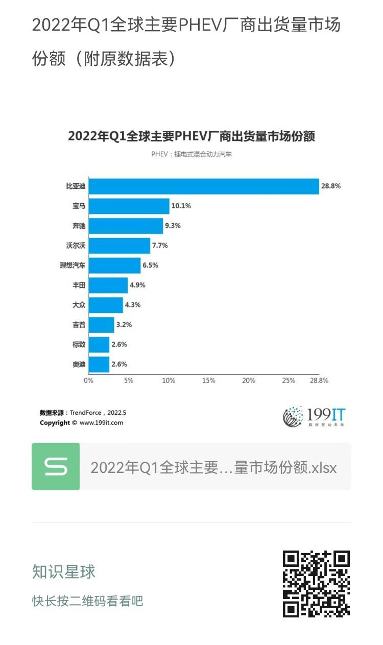 - 2022年Q1全球主要PHEV厂商出货量市场份额(附原数据表)