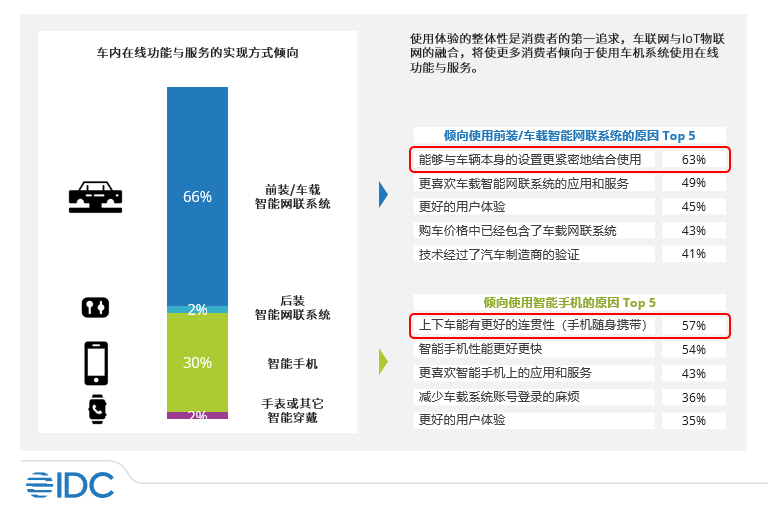 消费者厌恶繁琐,因而倾向于追求智能体验的整体性。对于车辆的在线功能与服务,主流群体的首选是车辆的前装配置,认为这种方式能够与用车体验本身更加紧密地结合。而部分消费者倾向于选择手机,最主要的原因也是用车以外的生活中对手机较为依赖。因此,在车机系统运行稳定性与流畅度均随座舱域发展有所提升的今天,车联网与物联网的进一步融合将是推动智能网联普及的主要动力。