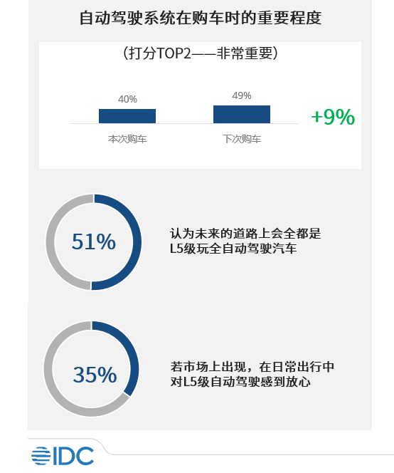 自动驾驶、智能网联、新能源车是汽车行业的大势所趋,也是国家发展智能汽车产业的重要战略方向。各 OEM 主机厂与软硬件供应商均投入了巨大的研发成本。在此背景下,IDC 发布《中国消费者智能汽车态度与意愿调查报告》。寻找到市场上对智能网联汽车、自动驾驶、新能源车等话题具备基本认知的新购及潜在车主(1:1 比例招募),并开展调研,对自动化、网联化、电动化、共享化在市场上的认知现状分别开展研究。