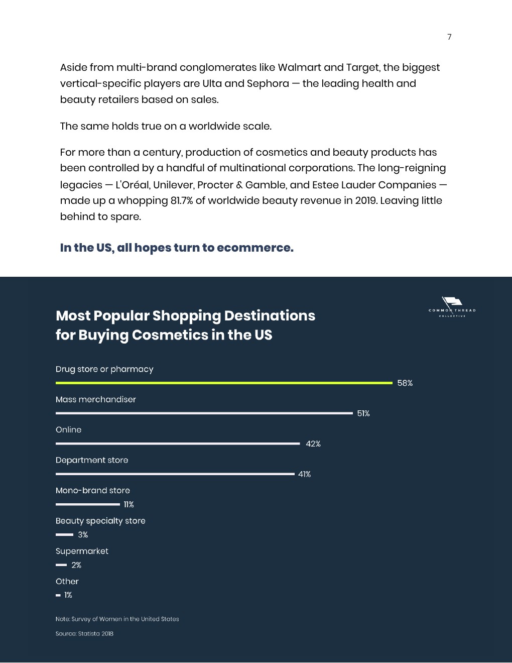 除了沃尔玛和塔吉特等多品牌集团外,最大的垂直行业参与者(基于销售额)是 Ulta 和丝芙兰。在全球范围内也是如此。一个多世纪以来,化妆品和美容产品的生产一直由少数跨国公司控制。欧莱雅、联合利华、宝洁和雅诗兰黛在 2019 年占全球美容收入的 81.7%。