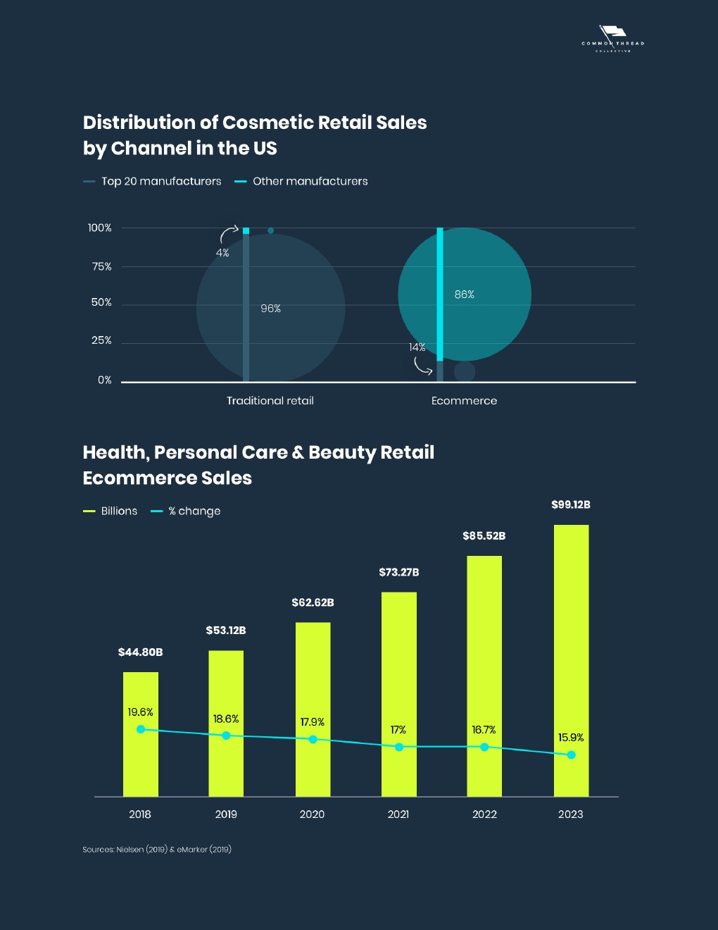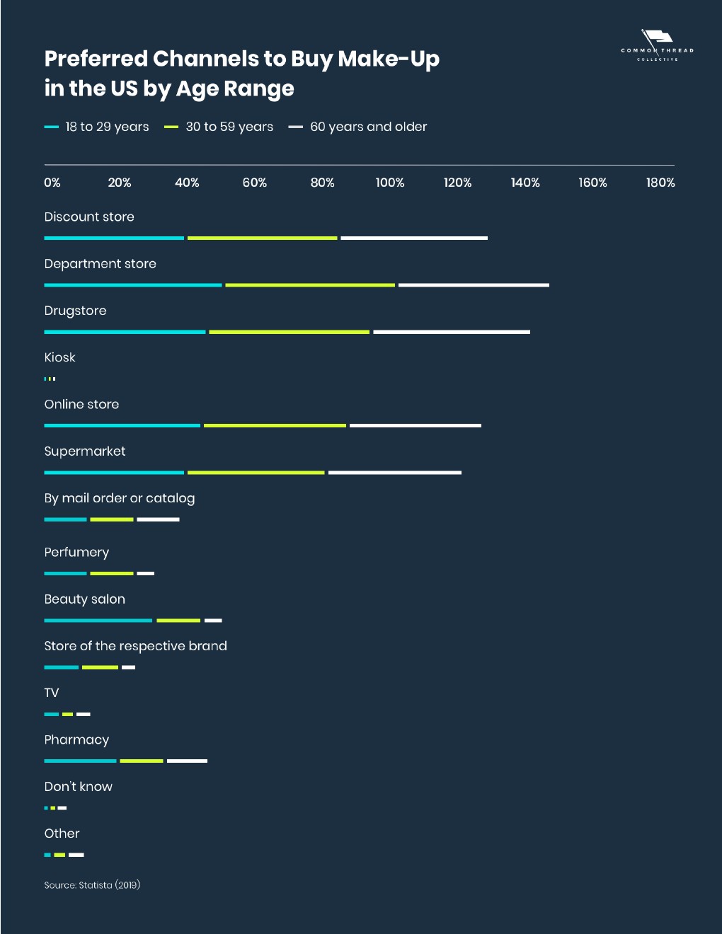按地域划分,亚太地区和北美占主导地位,占市场总和的60%以上。由于各个国家/地区的购物偏好不同,希望主宰全球的化妆品品牌必须遵循以客户为中心的模式,该模式与数字渠道和实体渠道相交叉。在美国,线下购物仍然占据主导地位——线下实体店占81%。与此同时,线下市场份额正在下降,而线上则在攀升。对于任何关注电子商务趋势的人来说,这种转变并不令人意外。美国甚至被认为是 2018 年全球最有价值的美容和个人护理市场。引领潮流,然后为其他国家制定效仿的标准。尽管分销方式在不断发展,但传统的零售连锁店在美国仍然扮演着最重要的角色。