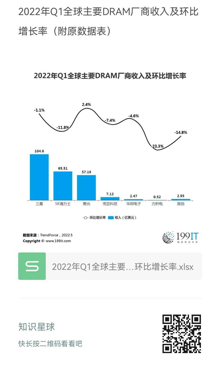 - 2022年Q1全球主要DRAM厂商收入及环比增长率(附原数据表)