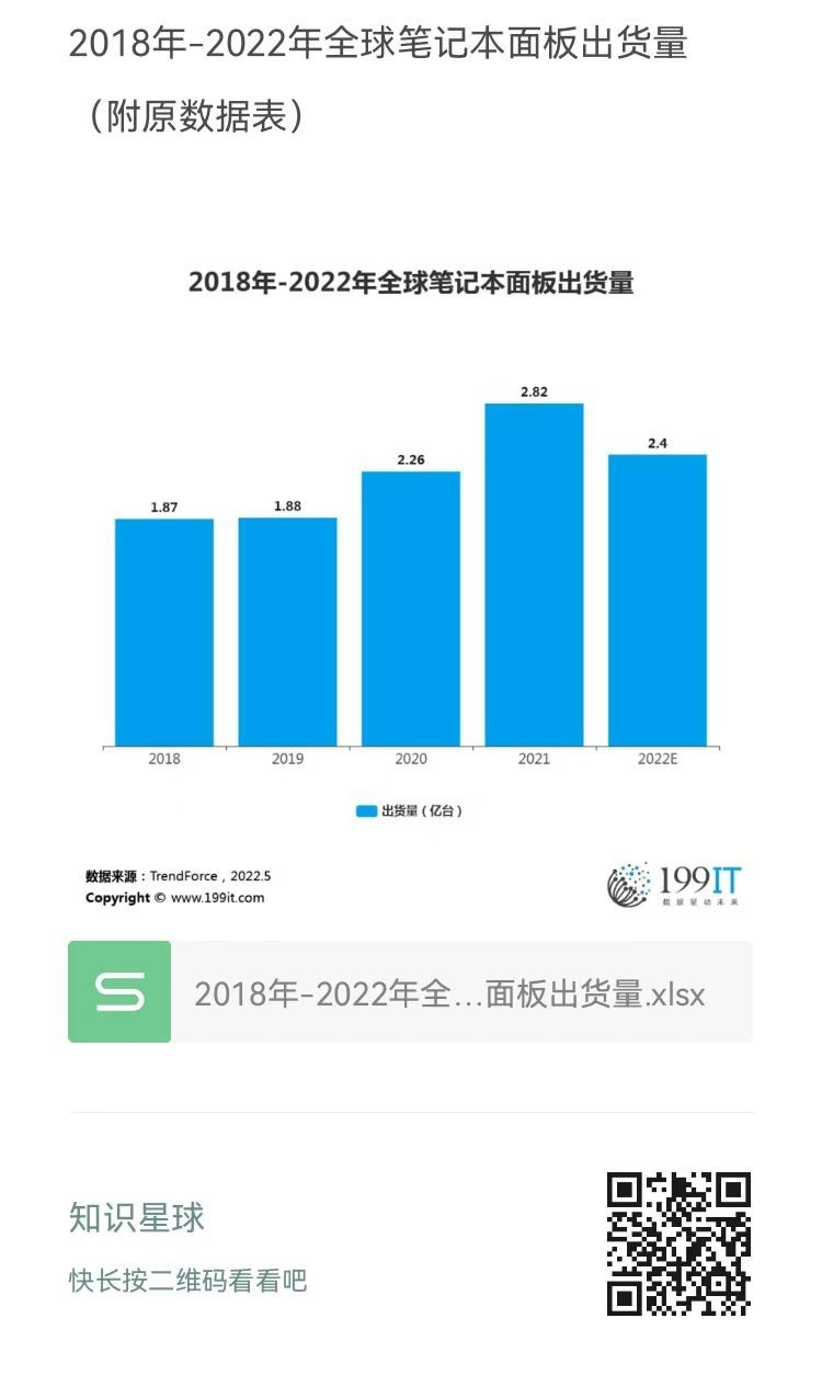 - 2022年Q1-Q4全球笔记本面板出货量及预测(附原数据表)