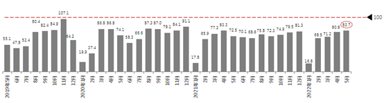 从构成汽车消费指数的分指数看,2022年5月需求分指数为78.1,高于上月,预期6月市场需求有所提升。现阶段全国疫情防控形势整体向好,前期疫情抑制的购车需求将逐渐得到释放。同时,随着一系列促消费政策的落地,也会促使消费者购车需求的提升。