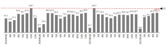 2022年5月购买分指数为89.7,高于上月。随着购车需求的增长和促消费政策的刺激作用,以及经销商为了完成季度和半年度销量目标而开展冲量促销等活动,都会促进6月汽车销量实现增长。