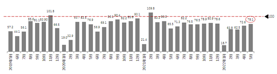 2022年5月入店分指数为83.7,高于上月。随着疫情防控措施的有效实施,全国大部分地区疫情都有所缓解,居家隔离人员减少,生产生活节奏逐步恢复正常。尽管个别地区由于疫情防控的需要,部分人员还需居家隔离,部分经销商也暂停营业,不利于客户入店购车。但全国疫情防控形势整体向好发展,所以6月入店购车人数会有所增加。