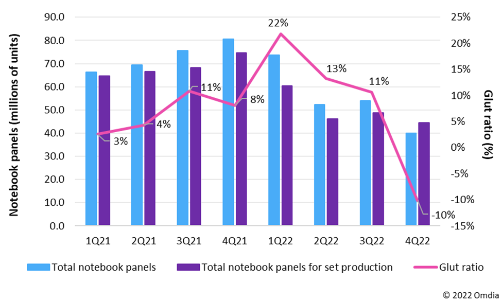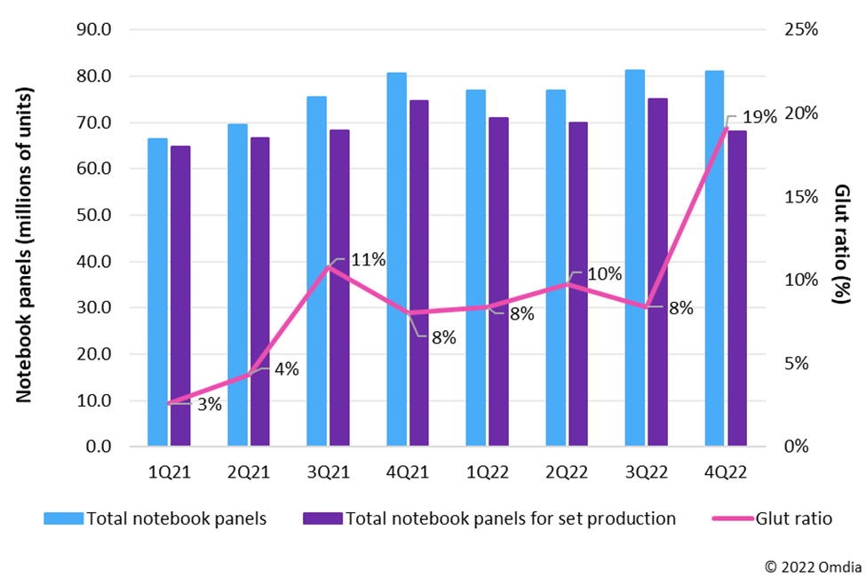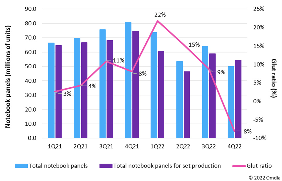 - 2022 年的笔记本电脑库存与 2020 年和 2021 年相比翻倍;因此,所有渠道都对笔记本电脑进行了砍单。