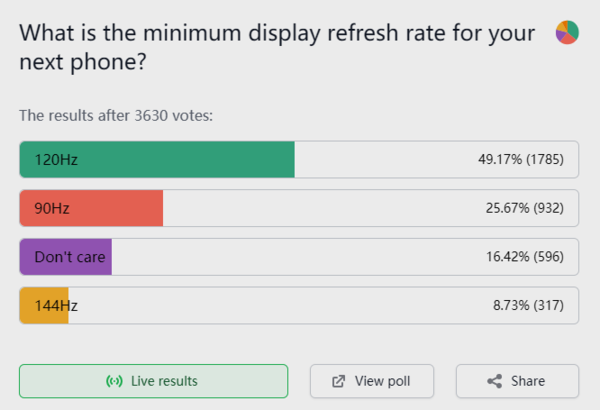 据手机中国了解,在去年的一项相关民意调查中,外国网友就认为高刷新率的手机屏幕是极其重要的。而从此次调查结果来看,与去年的情况基本大同小异。