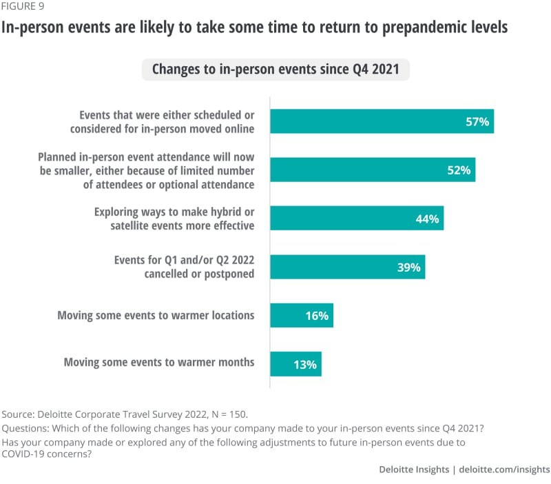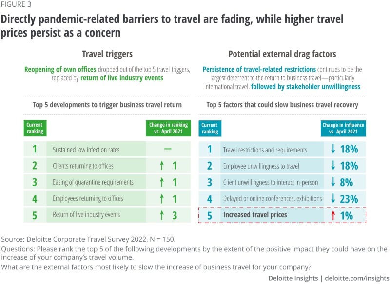 2021-2022年,旅行价格上涨是少数几个影响出行的因素之一。为了控制成本,近3/4的公司将限制旅行次数。