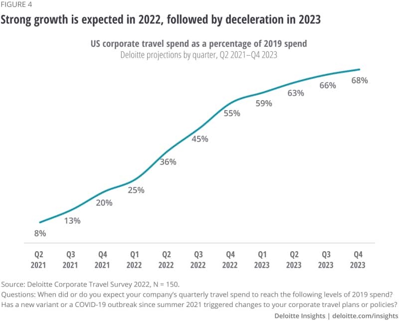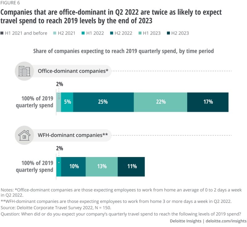 在2021年6月的调查中,34%的企业差旅经理预计到2021年底将达到2019年差旅支出的一半。但是,只有8%的受访者做到了。