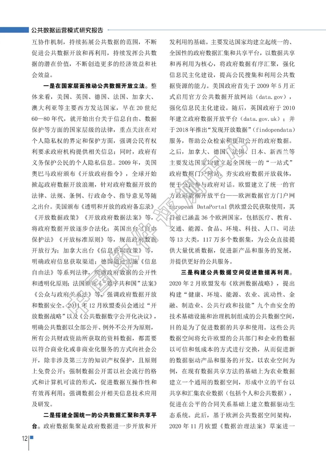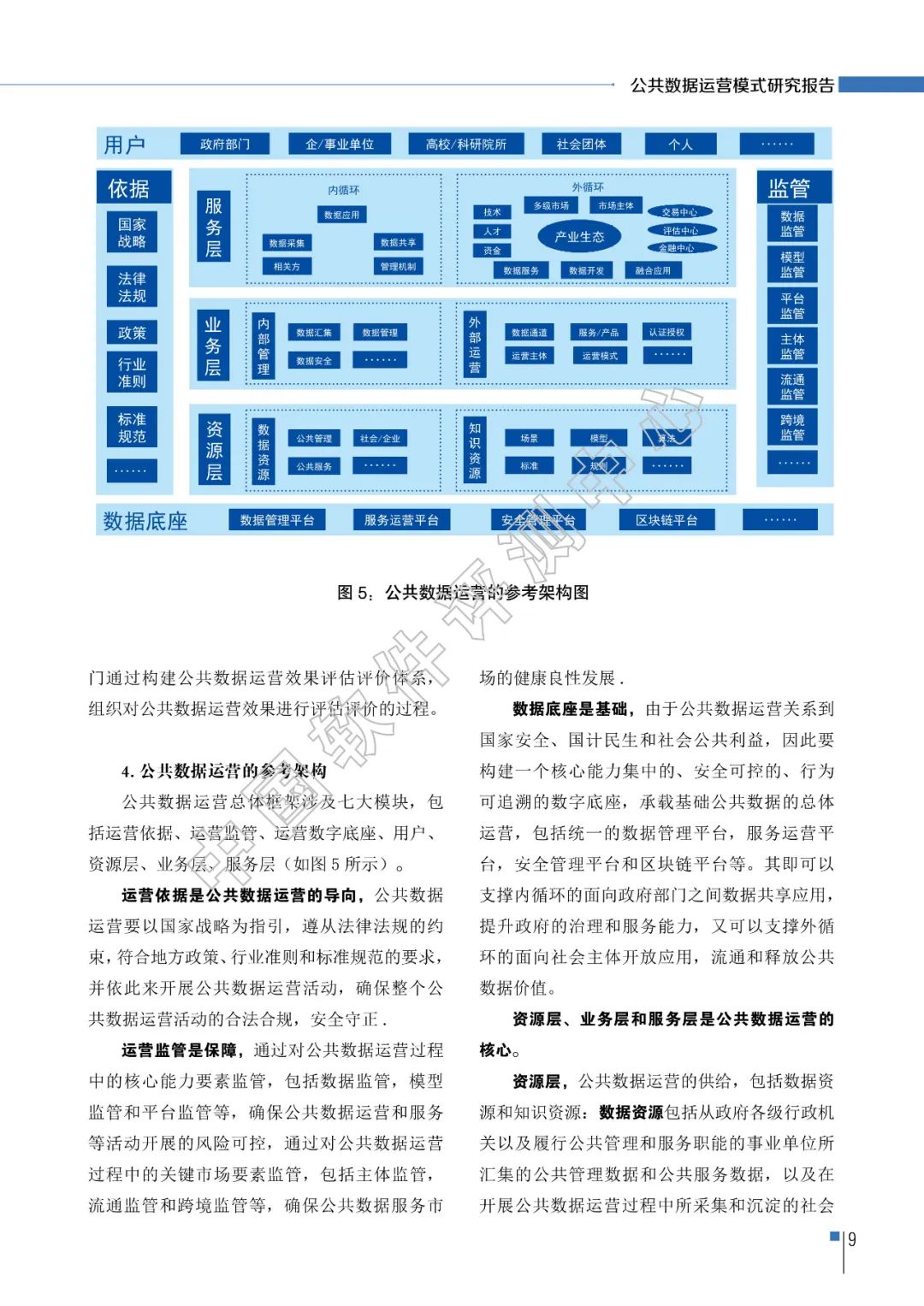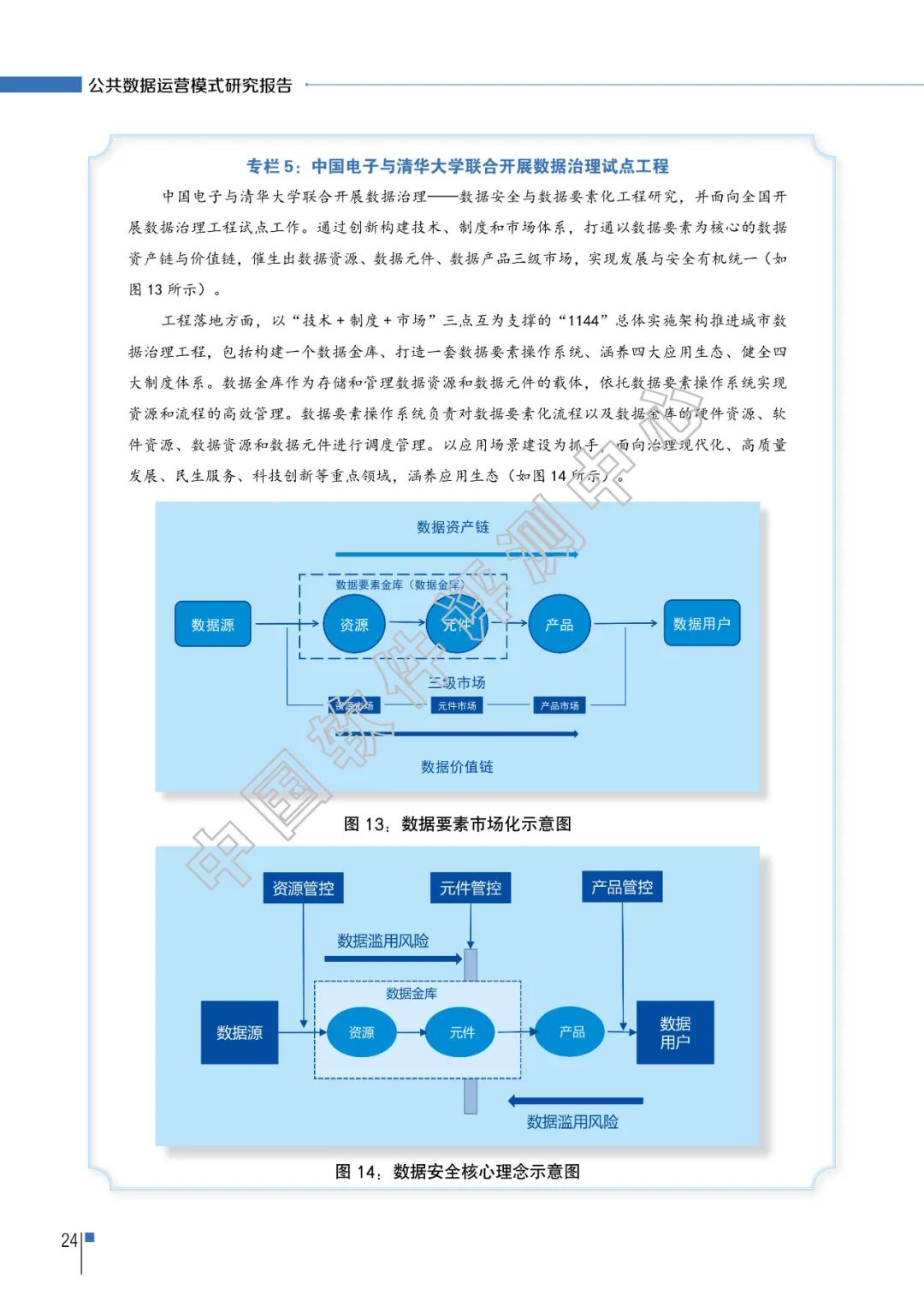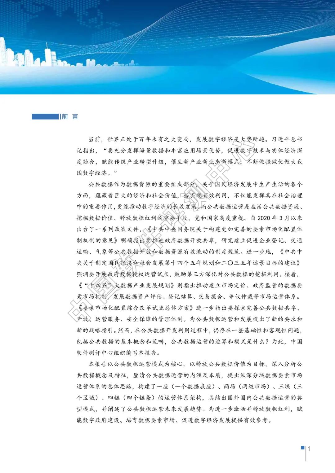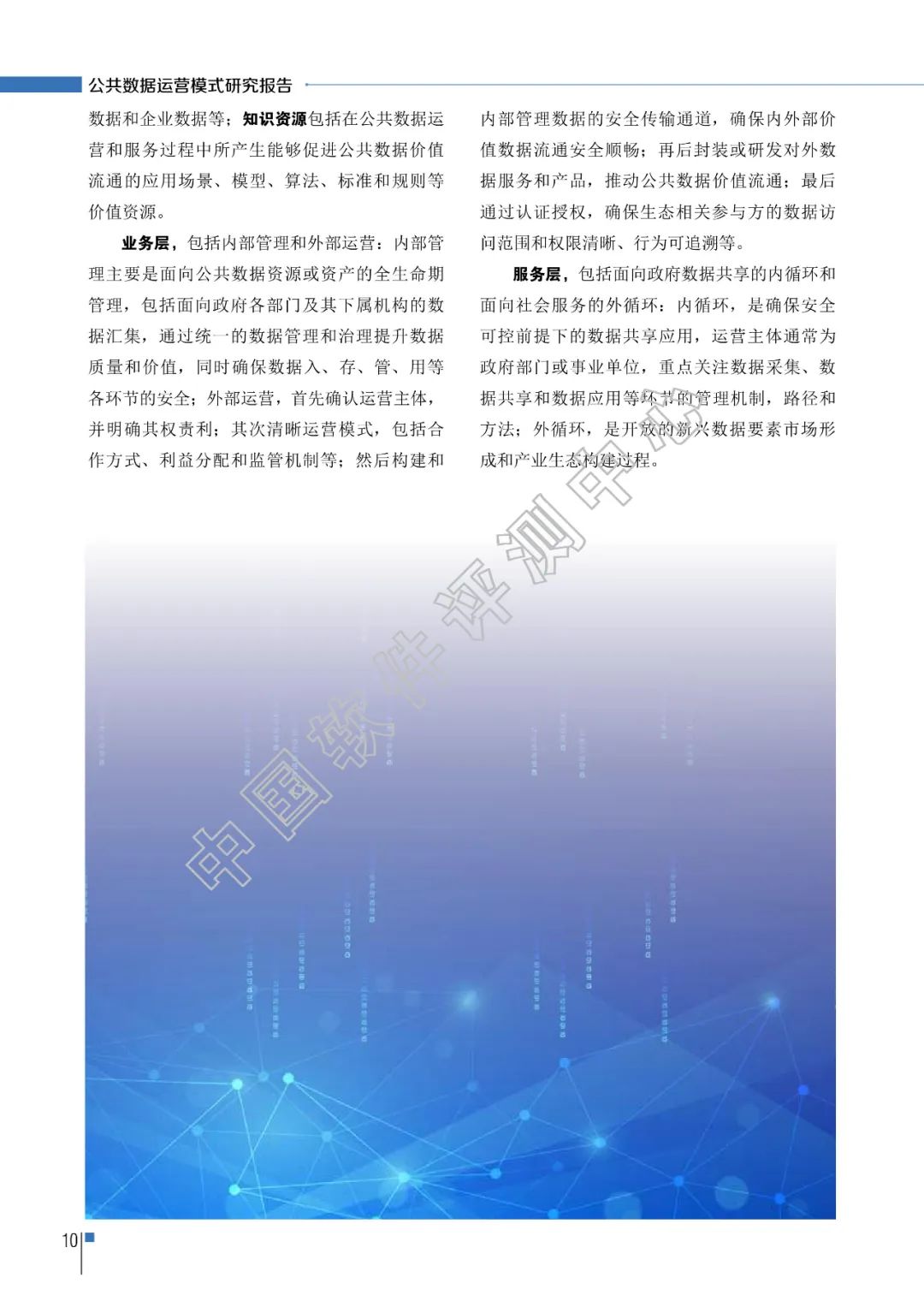 报告厘清了公共数据、公共数据运营等相关概念,分析提炼了“一座”、“两场”、“三域”、“四链”的公共数据运营体系框架,梳理了国内外公共数据运营的现状和模式,展望了未来的发展趋势,以期为国家推进公共数据开发利用、培育数据要素市场相关工作提供借鉴和支撑。