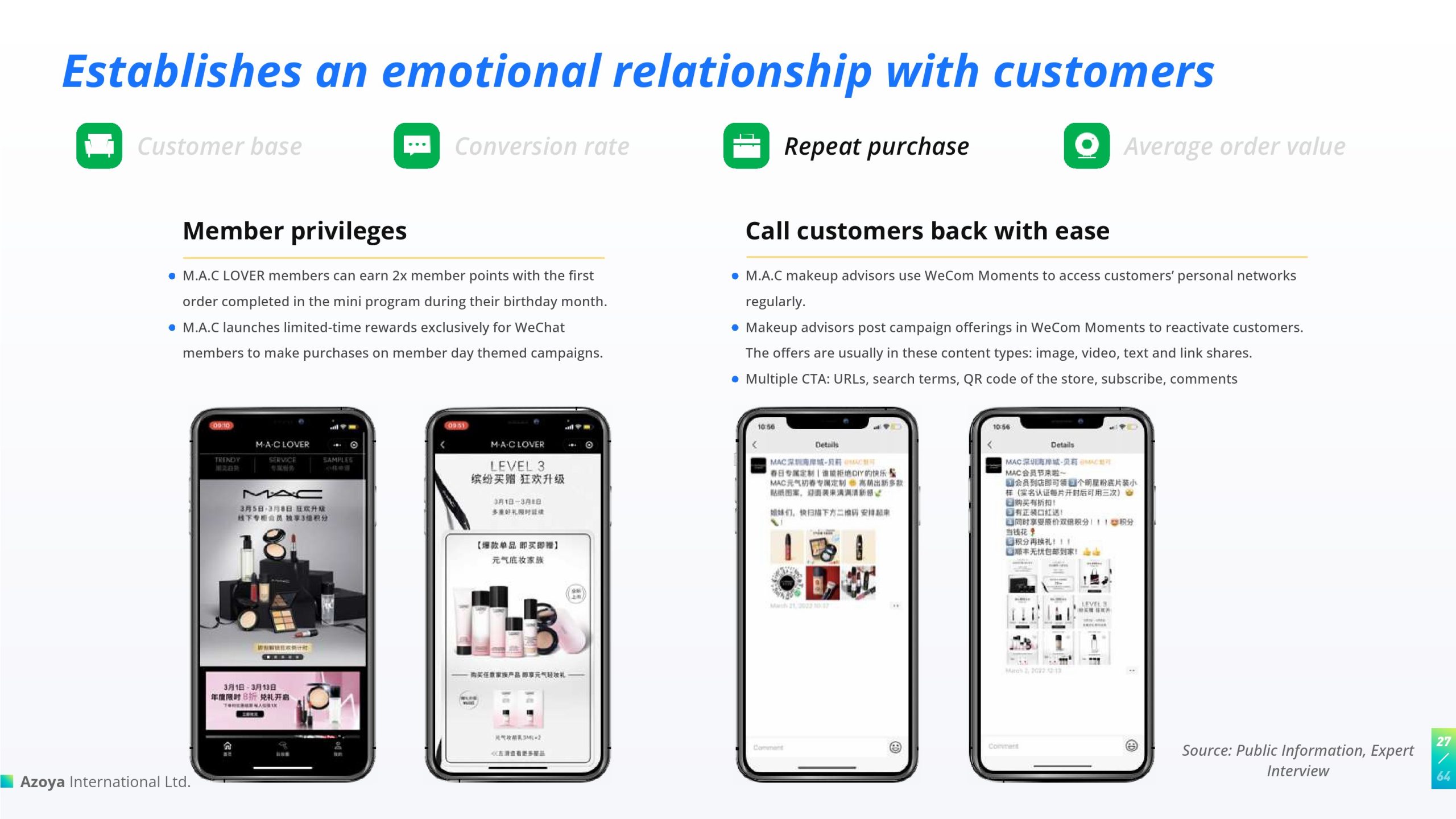 真实可靠的购物体验让70%的客户更愿意在私域回购。品牌逐渐培养BA和顾客之间的亲密关系,同时让 BA 成为顾客的私人联系人、顾问和购物助手。