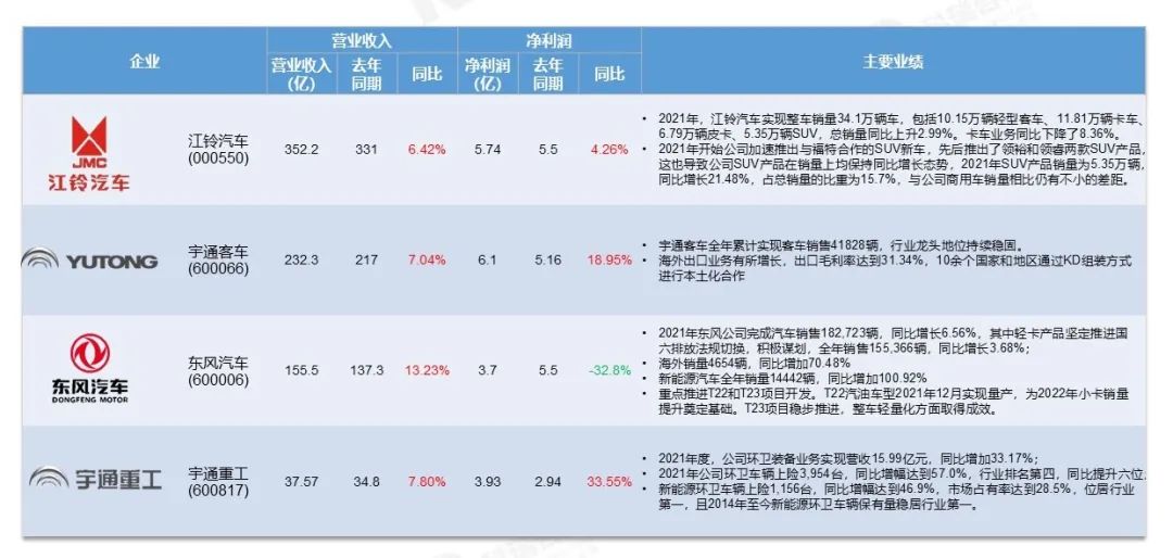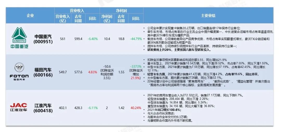 商用车企业2021年财报及主要业绩