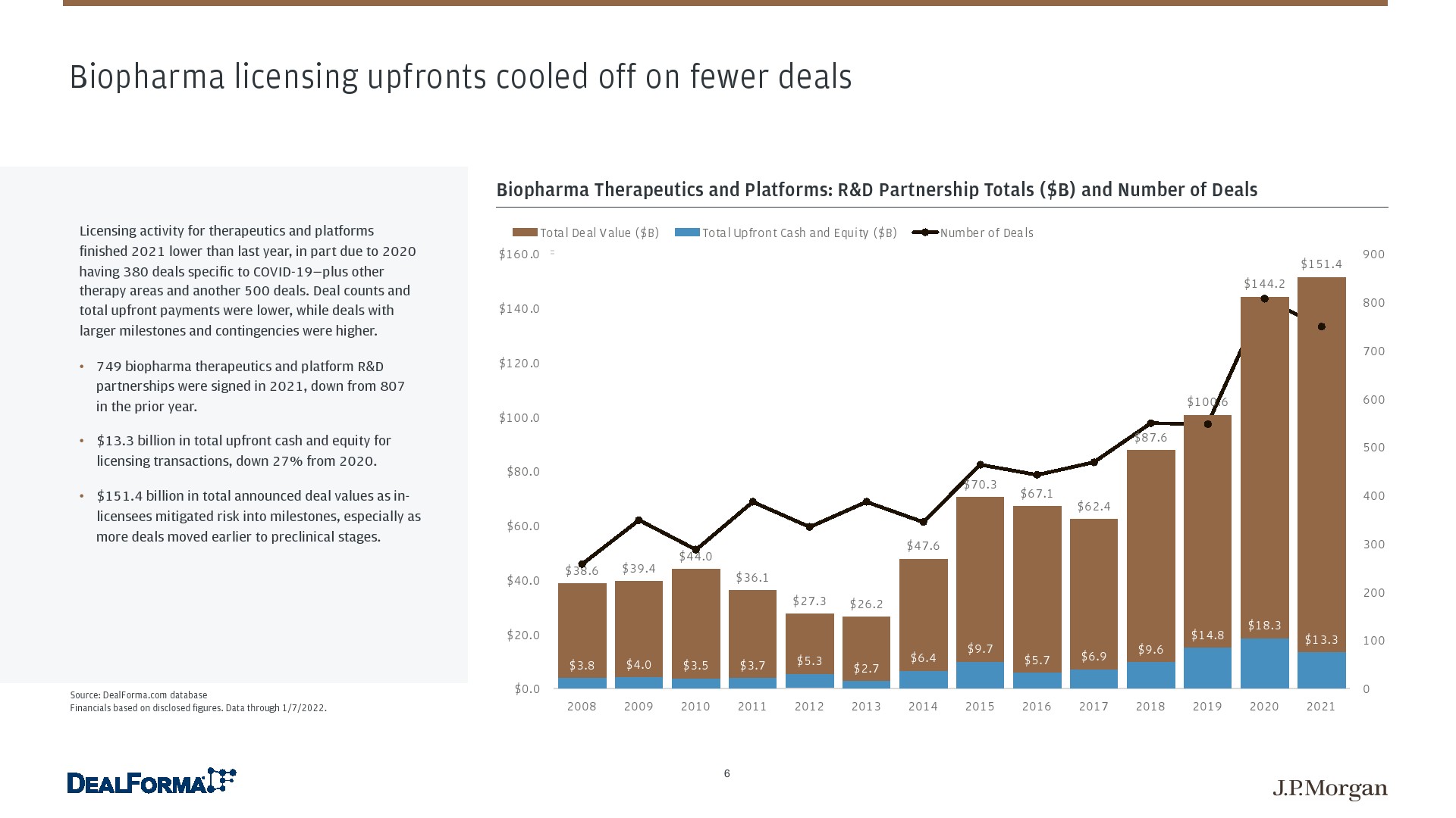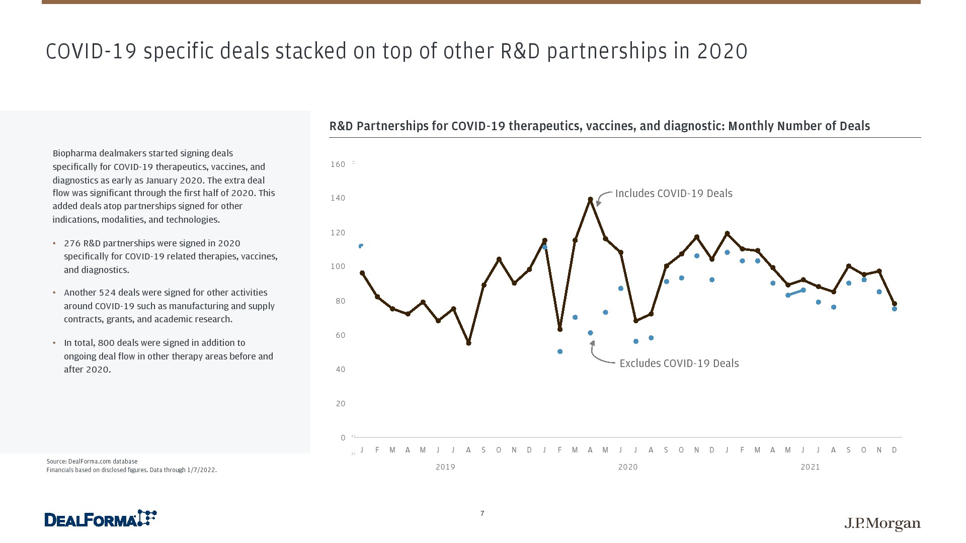 研发合作伙伴关系:去年交易数量略有下降,原因是2020年的大量活动主要由 COVID-19大流行推动。