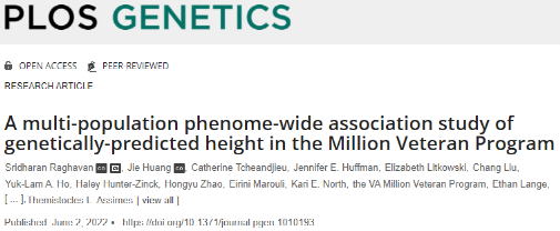 相关研究成果以题为“A multi-population phenome-wide association study of genetically-predicted height in the Million Veteran Program”的研究论文于6月2日发表在期刊《PLOS Genetics》上。