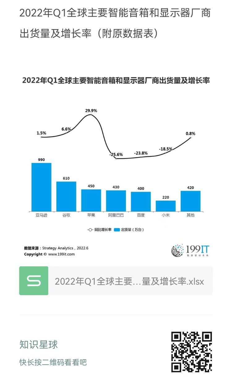 - 2022年Q1全球主要智能音箱和显示器厂商出货量市场份额(附原数据表)