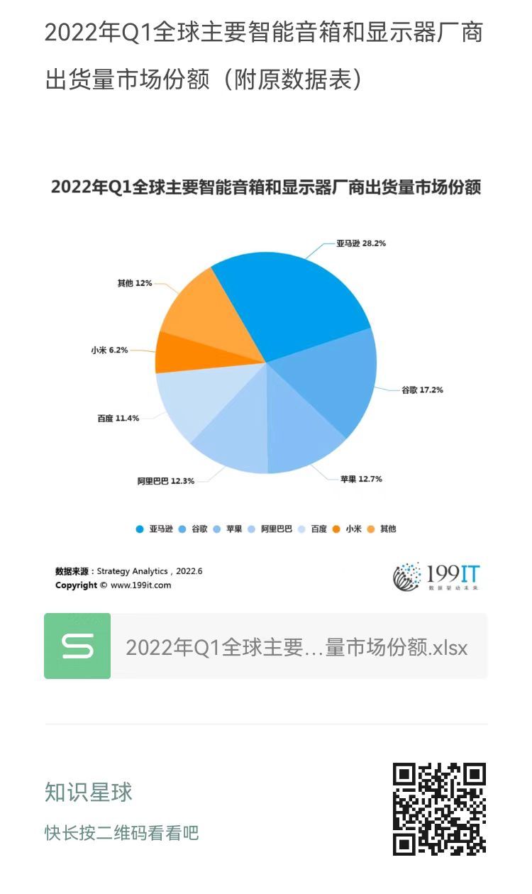 - 2022年Q1全球主要智能音箱和显示器厂商出货量及增长率(附原数据表)